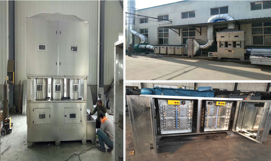 该废气经过废气收集罩到达喷淋洗涤塔通过UV光氧除臭设备进入活性炭吸附装置在经过管道高空排放。