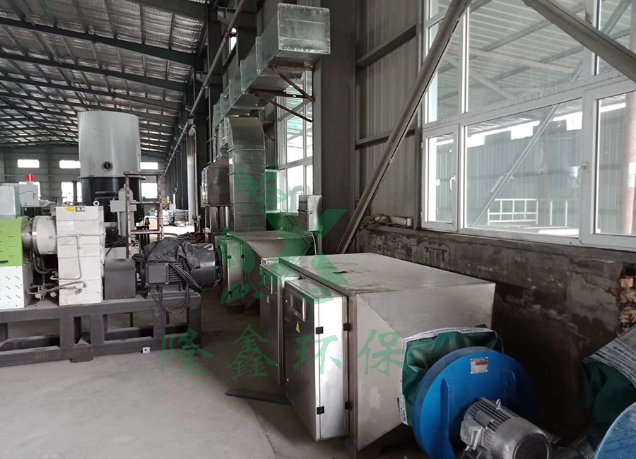 现代生活对塑料的需求越来越大,废旧塑料的再生利用也成为趋势,将废旧塑料回收洗涤造粒是一种变废为宝、资源重新利用的做法,但再生造粒过程中,当温度超过200℃时,增塑剂及内部的低沸点杂质会发生氧化分解,产生大量含有粉尘颗粒的有害气体,其中含有较多的有机物质,如苯、甲苯、苯乙烯、含氯有机物等,这些有害气体具有污染性,直接排放到空气中不仅会对工作人员造成身体伤害,同时还会污染环境。