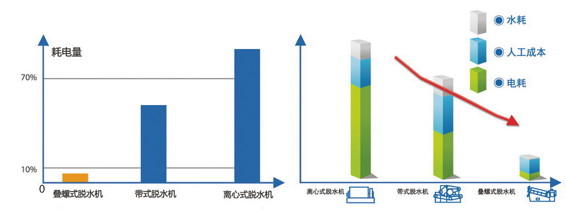 ●一体化紧凑设计,节省运行费用; 低速螺旋挤压,大幅节省用电费用; 设备不堵塞,大幅节省用水费用; 全自动无人运行,节省人工费用。因此,本设备也真正成为符合我国政策的节能环保新型设备。